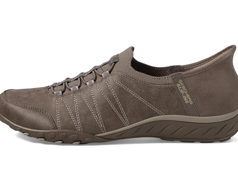 - Crafted with a Stretch Fit® design and stretch laces that offer sock-like comfort, the SKECHERS® Breathe Easy- Home Body Hands Free Slip-Ins are designed to match your everyday comfort and style. The low-profile flexible midsole of these shoes offers added comfort while the Exclusive Heel Pillow™ securely holds your foot in place. Match your casual outfits and style up your simple looks with these slip-on shoes.