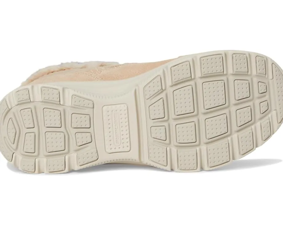 - Style that feels like a hug, SKECHERS® Easy Going – Gentle Fall. Designed to keep you warm and on-trend, this ankle-high beauty features a soft suede and sweater knit upper accented with a plush faux-fur trim that screams cozy season goals. The zippered side closure makes slipping in and out a breeze, while the moc toe and wedge heel add just the right touch of laid-back sophistication. Inside, the SKECHERS Air-Cooled Memory Foam® cushioned insole hugs your feet in unmatched comfort, and the durable rubber outsole ensures grip with every step.
