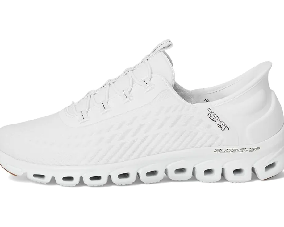 - Make every step a breeze wearing SKECHERS® Glide Step Tranquility Hands Free Slip-Ins! These slip-on shoes feature an engineered mono-mesh upper with fixed stretchable laces for a snug and secure fit. The Skechers Air-Cooled Memory Foam® cushioned comfort insole provides unrivaled support and cushioning, while the Exclusive Heel Pillow™ ensures your foot stays in place with every stride. Walk with ease and comfort with the Glide-Step® geometric midsole, designed to enhance your natural momentum.
