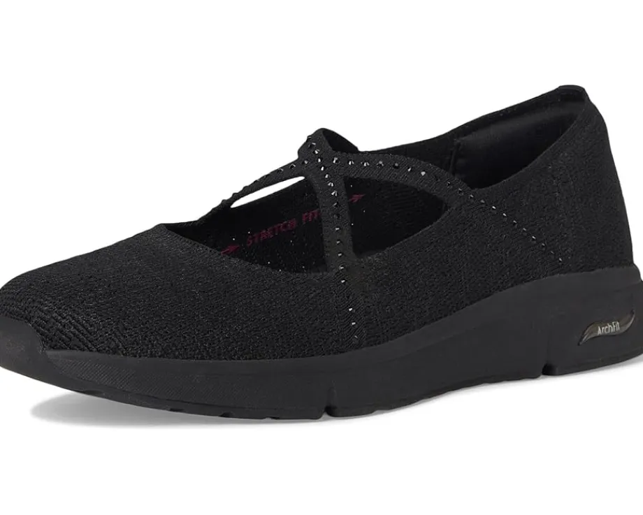 - Celebrated lifestyle expert, Martha Stewart, delivers her one-of-a-kind touch to these SKECHERS® Martha Stewart Arch Fit Living – Meadow Walk shoes. A part of the Skechers x Martha Stewart collaboration, these Mary Jane shoes feature a recycled knit mesh upper with rhinestone embellishments and a removable Arch Fit insole with podiatrist-certified arch support. Their footbed helps mold to your foot to reduce shock and increase weight dispersion, while the Stretch Fit design provides socklike comfort. They are crafted with 100% vegan materials. Lounge about in laid-back comfort with these slip-on shoes.