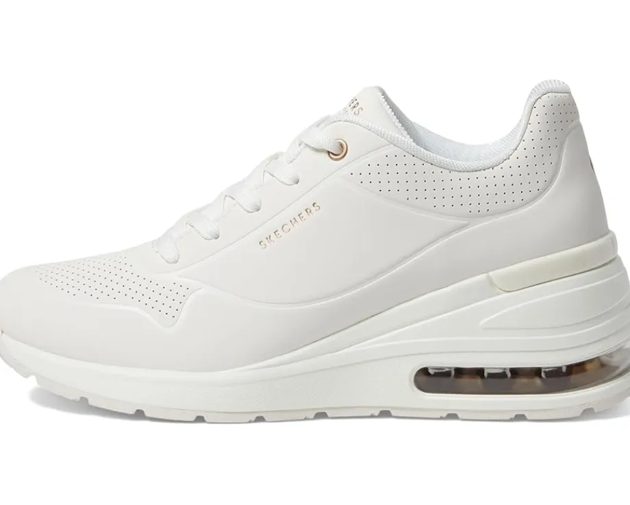 - Elevate your casual style choosing the SKECHERS® Million Air sneakers! These sneakers feature a sleek casual fashion sneaker design, perfect for everyday wear. The synthetic embossed durabuck upper gives a trendy touch, while the polyester lining ensures comfort all day. With the Skechers Air-Cooled Memory Foam® comfort insole and Skech-Air® visible airbag midsole, you’ll feel like you’re walking on clouds.