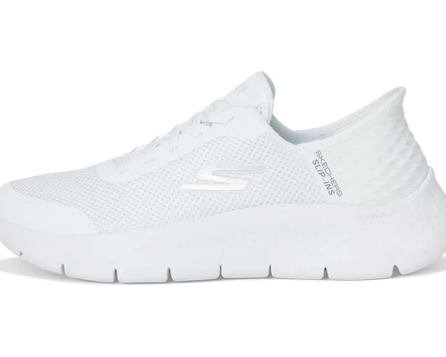 - Take every step with improved style and comfort wearing SKECHERS® Performance Go Walk Flex Hands Free Slip-Ins – Grand Entry that feature a round toe shape and exclusive heel pillow holds your foot securely in place. The sneakers are crafted with a athletic mesh upper, fabric lining, and air-cooled memory foam. The Skechers® Hands Free Slip-ins offer an easy fit and the lace-up closure gives a customizable fit.