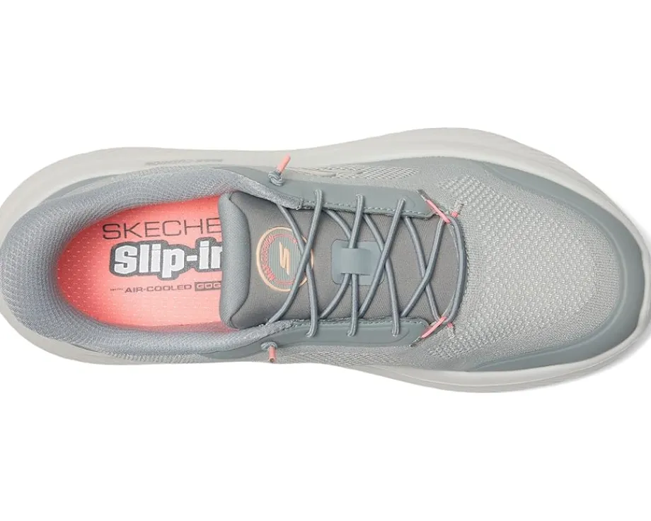 - Slide into the future of walking sporting the SKECHERS® Performance Go Walk Max Cushioning Hyper Burst Nikita Hands Free Slip-Ins. Designed with a breathable mesh upper and smooth fabric lining, this pair features Skechers Hands Free Slip-Ins™ for a no-touch, just-step-in fit that makes getting out the door faster than ever. The HYPER BURST® midsole, made with a cutting-edge Super Critical® process, delivers ultra-light, high-rebound cushioning with every stride. Coupled with the Max Cushioning design for plush support and an Air-Cooled Goga Mat™ insole for cool, springy comfort, your feet will feel pampered mile after mile. A bungee-laced front gives it a sporty twist, while the durable rubber outsole offers all-day traction.