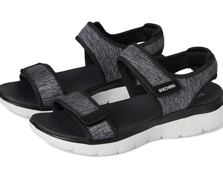 - The SKECHERS® Summits – Cutest Icon are ready for anything, from errands to explorations. This trendy sandal combines laid-back beach vibes with modern flair, featuring a leather upper and lining for a sleek, elevated look. Designed with a Yoga Foam cushioned footbed, it offers cloud-like comfort with every step. The flexible traction rubber outsole ensures stable footing, while the hook-and-loop closure and adjustable double strap slingback provide a custom, secure fit. Open-toe design lets your feet breathe, making it perfect for sunny days. Crafted with vegan materials, it’s the eco-friendly choice for fashion-forward comfort.