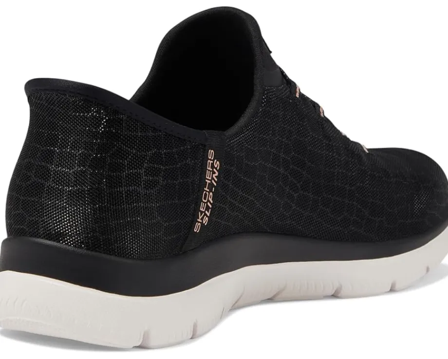 - Fetch that ease and stability donning the SKECHERS® Summits-Slip Ins. The sneakers and athletic shoes are designed with Air-Cooled Memory Foam ® cushioned comfort insole and Exclusive Heel Pillow™ holds your foot securely in place midsole.