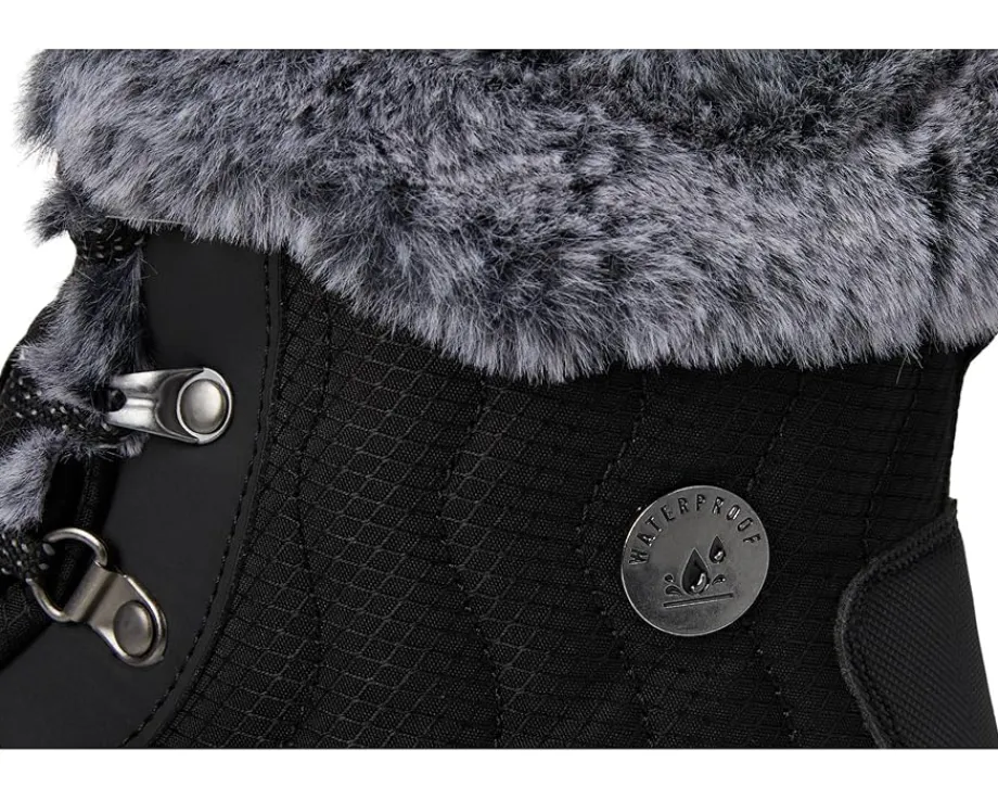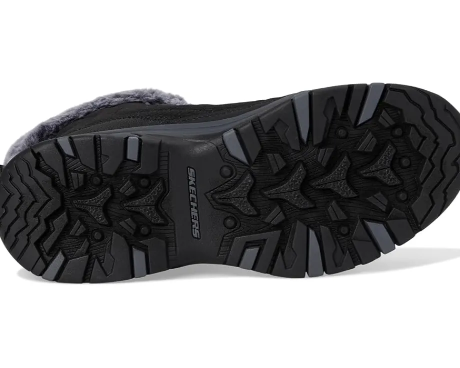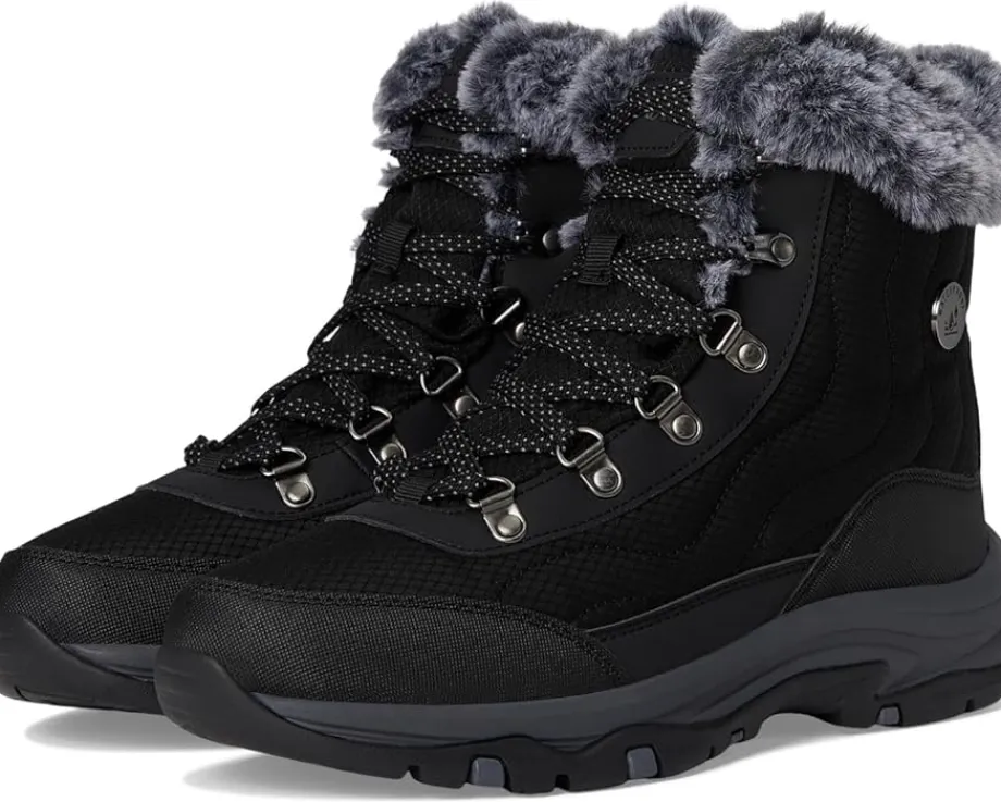 - Keep it cozy this season in rugged comfort wearing the SKECHERS® Trego – Stormie. The lace-up hiking boots feature waterproof synthetic and mesh upper, faux-fur lined trim and Skechers Air-Cooled Memory Foam® cushioned comfort insole. The ankle-high shoes have fabric lining, waterproof seam-sealed design, and round toe design.