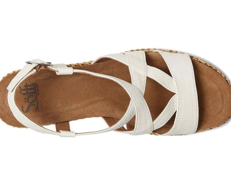 - The Sofft® Devyn wedge sandal is a stylish shoe and they are also comfy. Made from leather and lined in leather, the upper wraps around your feet with comfort and breathability. You can adjust the buckle for a secure fit, and the open toes keep your feet feeling cool and collected. You can feel safe walking on the basket-wrapped wedge heel, which is perfectly balanced with a padded cork footbed and super cushy foam insole for easy support. Long-lasting traction from the rubber outsole is great for daily wear.