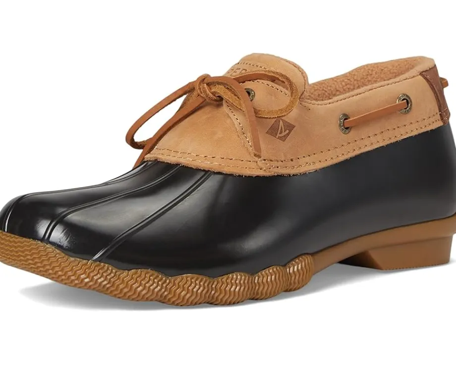 - The Sperry® Saltwater So boots are slip-on women’s boots that are perfect to pair with both casual and formal looks. These ankle-high boots are made of a rubber upper, polyester insole, and polyester lining. Waterproof and durable, these lace-up boots make a great addition to your footwear collection.