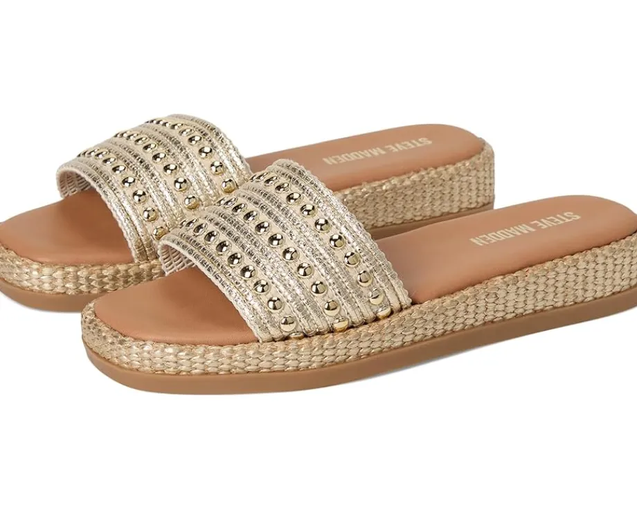 - The Steve Madden® Boardwalk sandals offer a comfortable slide design with a platform for added style. The open square toe adds a touch of sophistication. Perfect for any casual occasion, these slip-on sandals will elevate any outfit while keeping you comfortable all day. These come crafted with a cotton upper, synthetic rubber lining, and a comfortable rubber insole.