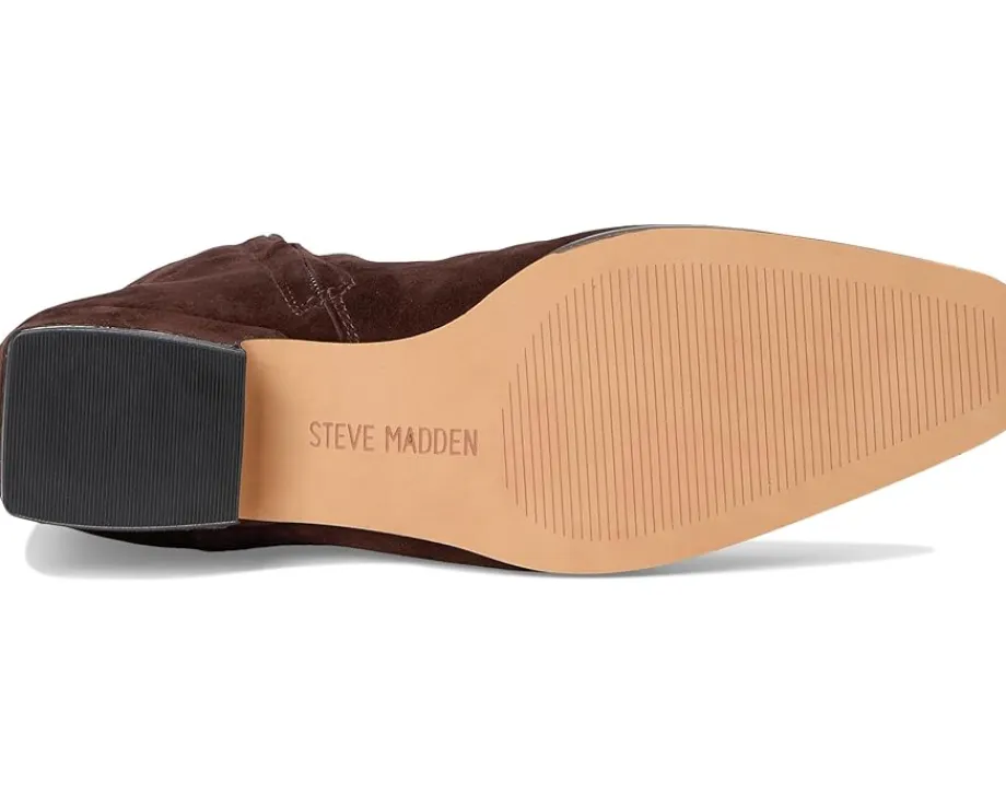 - Steve Madden® Dusty boot is a stylish slip-on boot designed for effortless wear, combining comfort and fashion with its sleek design. Crafted from leather upper, synthetic rubber lining, and rubber insole, this pair of boots features square toe, block heels, ankle-high silhouette, and zippered side closure.