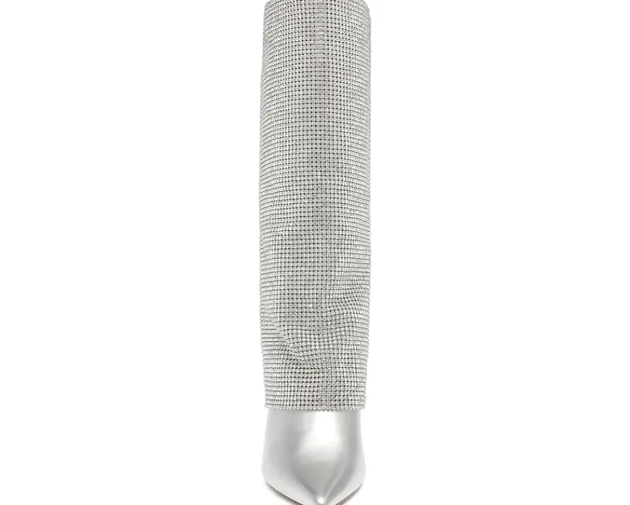 - Carved in a smooth and glossy pointed toe silhouette with foldover rhinestone detailing, the Steve Madden® Riski Boots are sure to add some drama to your look. They are perched on a sleek wedge heel for a chic appeal and come with a zippered interior closure for ease of wear.