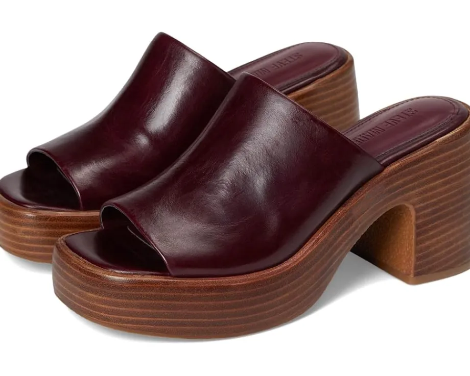 - Turn heads in the bold and beautiful Steve Madden® SHANTON – a retro-inspired mule reimagined for the modern muse. Crafted with a rich suede upper and styled with a sleek toe strap, Shanton effortlessly blends nostalgic flair with everyday wearability. The chunky block heel and platform sole bring instant elevation, literally and stylistically, giving your outfit that extra oomph without sacrificing comfort. A faux leather lining and insole provide a soft, supportive step, while the slip-on silhouette makes them your new go-to for easy, confident style. Finished with a durable synthetic rubber outsole, these mules are perfect for strutting through city streets or dancing the night away.