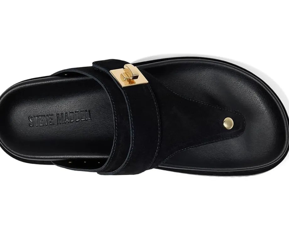 - The Steve Madden® THONA is a stylish and comfortable thong sandal. It features a footbed and a flatform design for added support. Its easy style makes it perfect for everyday wear. Expertly crafted with quality materials, this sandal offers both fashion and function. The slip-on style features a suede upper, synthetic lining, faux leather insole, and synthetic sock.