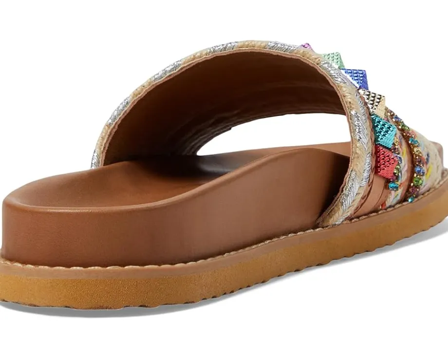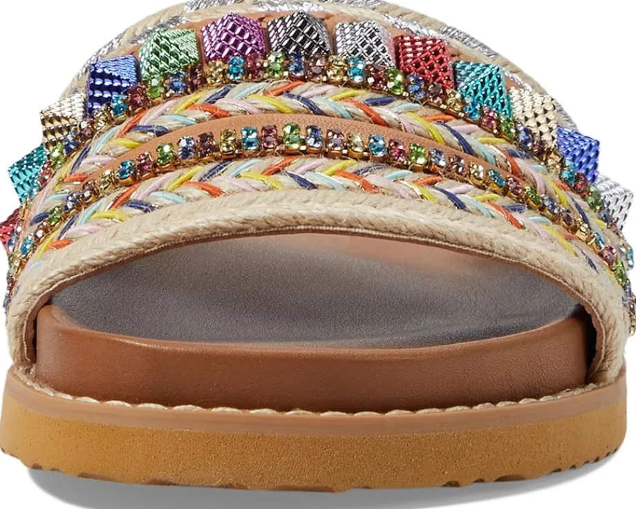 - Bring a delightful charm to your casual comfort ensembles wearing the Steve Madden® Milina Sandals. The slip-on footwear features embellished fabric upper construction with open toe silhouette and synthetic rubber outsole.