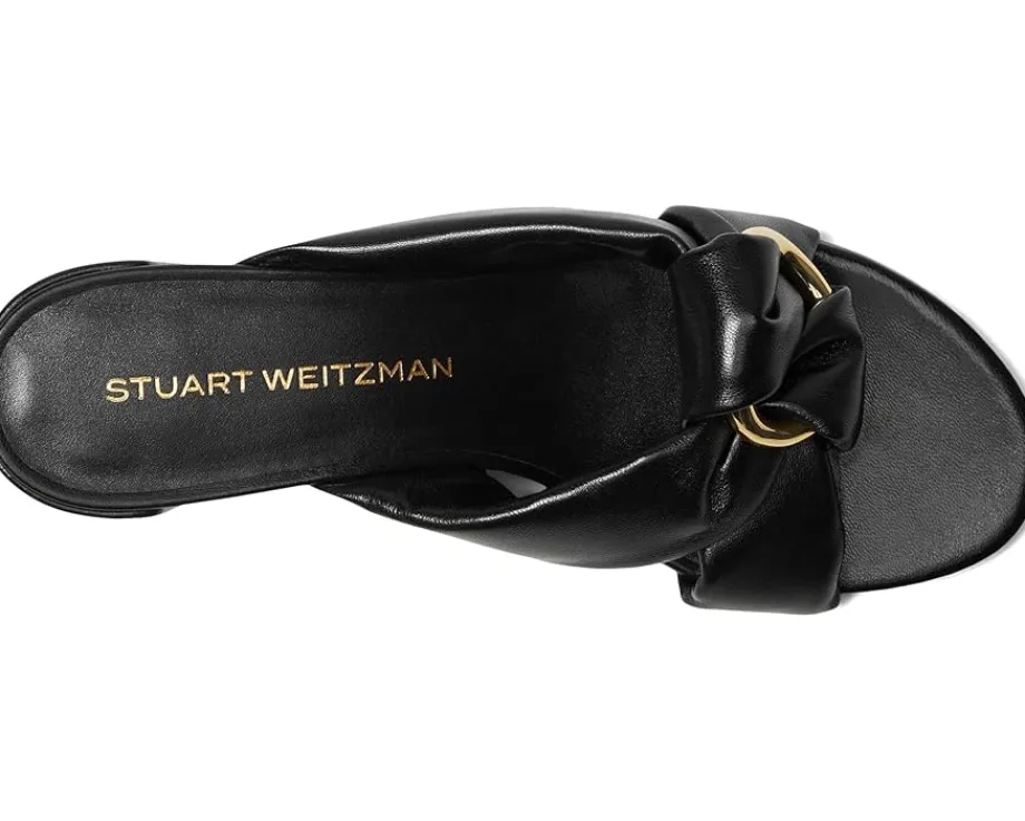 - Prepare to turn heads donning the Stuart Weitzman® Cece Block Slides 50. The knotted leather upper and goldtone ring detail add a touch of sophistication to your look. Crafted from beautiful mestizo leather and lined with plush lamb leather, these slides offer both style and comfort. Complete with leather insole and block heels for added support, these slides are perfect for any occasion with their chic open toe design.