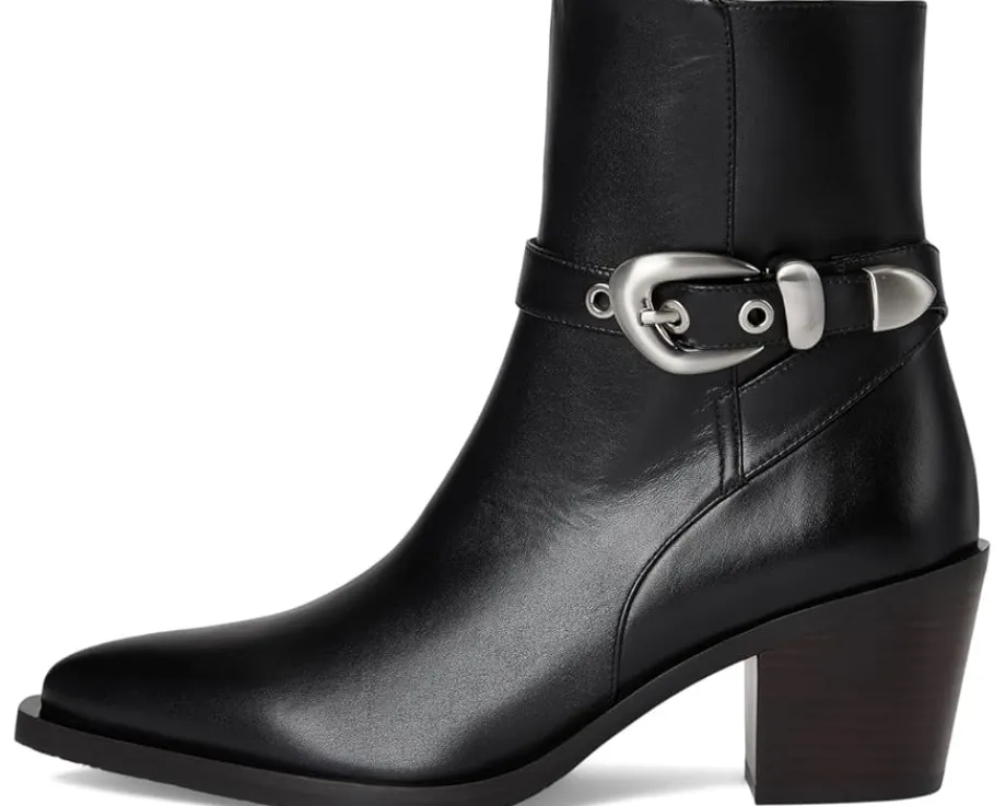 - Make a bold fashion statement wearing the Stuart Weitzman® Maven Western Booties. These heeled boots are made of a leather upper, insole, and lining. The zippered side closure offers easy wear, while the buckle closure ensures a perfect fit. These leather boots make a great addition to your footwear collection.