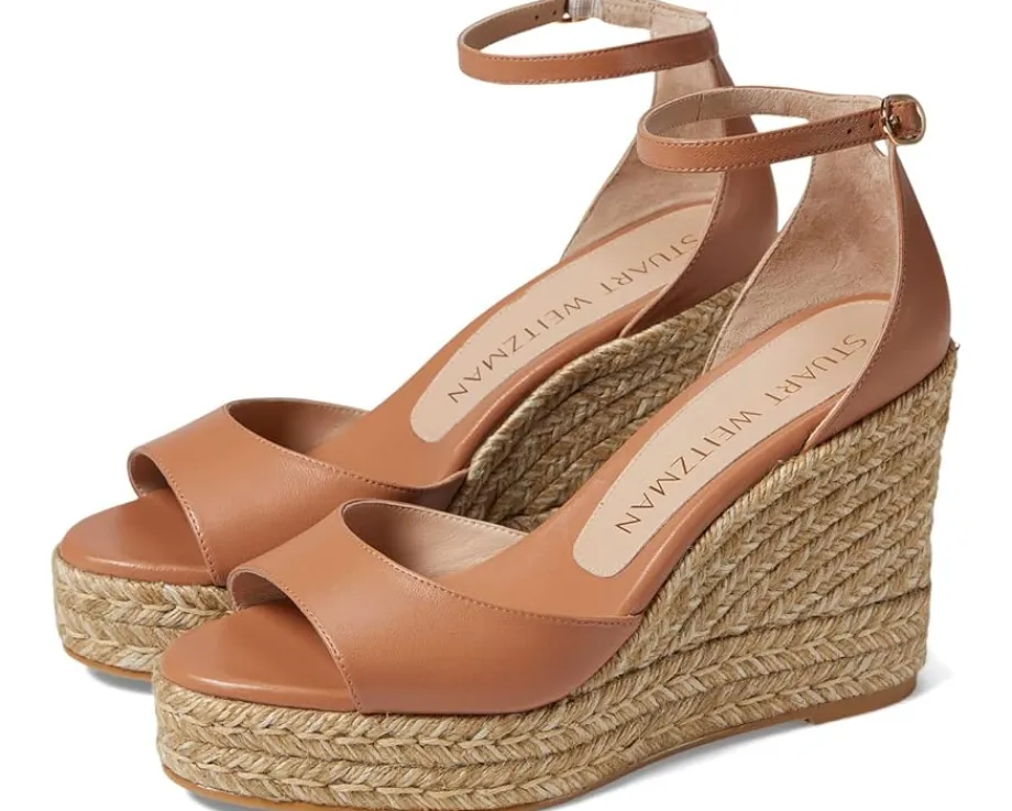 - A braided detailing adorns the Stuart Weitzman® Nudistcurve Espadrille Wedge Heels. This pair comes with the signature brand detailing on the insole.