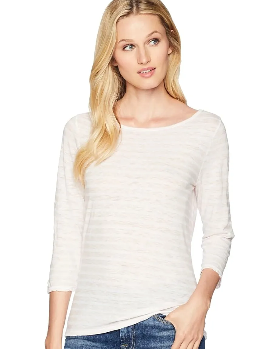 - Take it easy with the cool Three Dots™ Saguaro Stripe 3/4 Sleeve British T-Shirt.