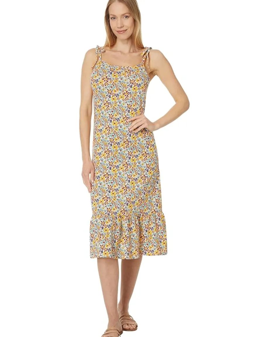 - Comfy and stylish, the Toad&Co® Dandelion Midi Sleeveless Dress is perfect for your everyday look. The pull-on style dress has a wide neckline, spaghetti sleeves with tie closure, ruffled hemline, side pockets, and a straight silhouette. The dress features intricate stripe pattern that elevates the overall look, making it a must-have in your wardrobe.