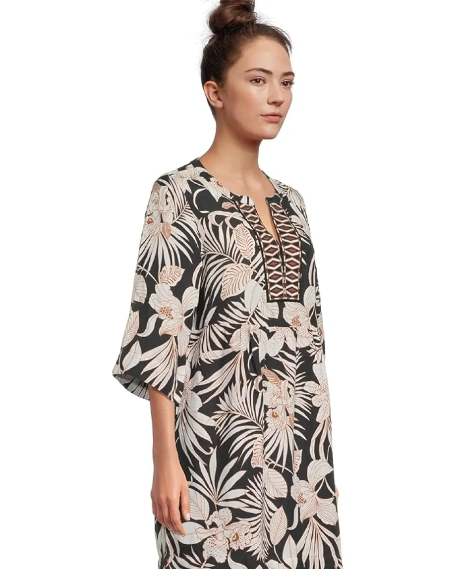 - Slay the style game effortlessly wearing Tommy Bahama® Stamped Lucia Blooms Tunic Dress. The lined, pull-on style dress features a split V-neck, three-fourth sleeves, an allover floral print, side pockets, and an above-the-knee silhouette.