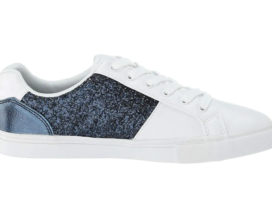 - Detailed stitching with brand logo at sides accented with glitter detail.