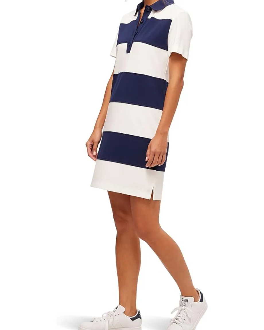 - Effortlessly chic and stylish, the Trina Turk™ Conners Dress is your go-to for a trendy, laid-back look. Featuring a flattering collar neckline and half placket, this short-sleeve dress is perfect for sunny days and casual outings. The bold horizontal stripe pattern adds a touch of contemporary flair, while the pull-on design ensures ultimate comfort and ease. With its relaxed fit and fresh style, this dress is a versatile wardrobe staple that can be dressed up or down for any occasion.