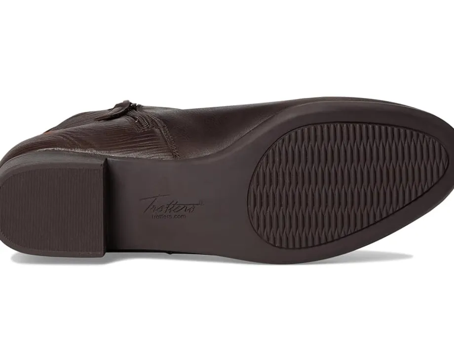 - Take every step in style and comfort by wearing the Trotters® Major Embossed boots. The round-toe boots have slight block heels, side zipper closure, and a sleek look. The leather upper with tricot fabric lining and removable cushioned footbed with arch support add additional comfort to the feet for prolonged wear.