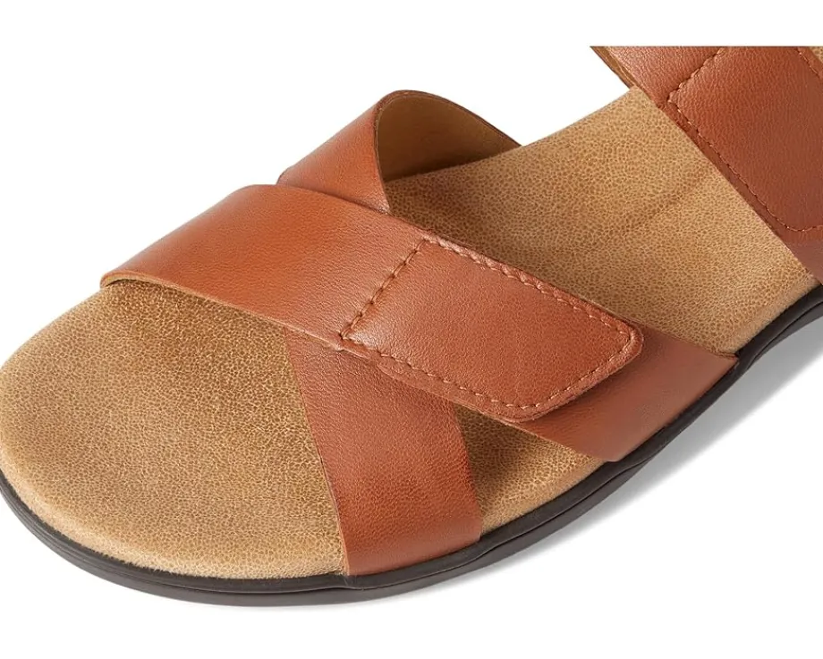 - Designed with criss-cross straps and an adjustable ankle strap with hook-and-loop closure, the Trotters® River sandals are the perfect choice to pair with your casual looks and outfits. The leather upper, memory foam with molded EVA footbed, and leather lining offer a comfortable walking experience. Lightweight and breathable, these leather flats are easy to slip on and off. Get ready for a comfortable day out wearing these flat sandals.