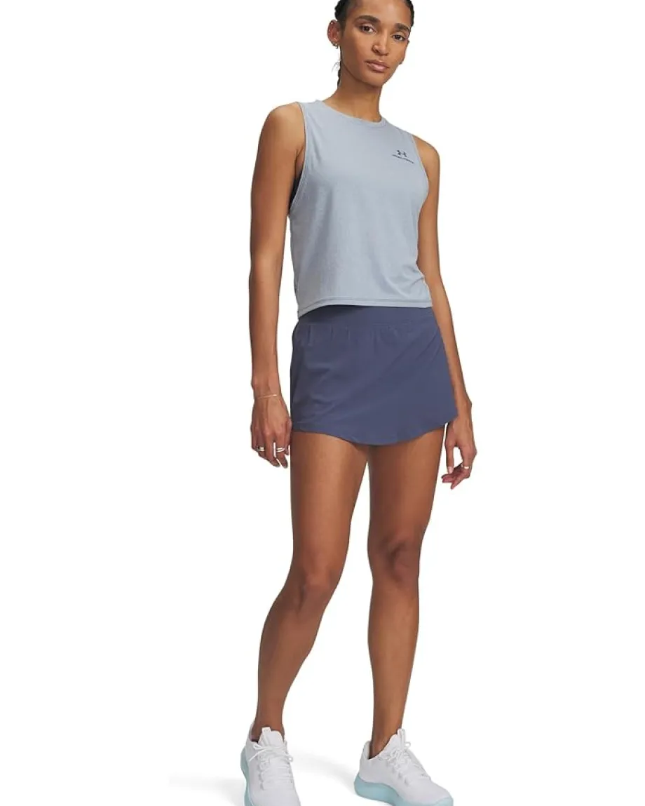 - Crush every challenge wearing the Under Armour® Vanish Flex Woven Skort-your go-to for ultimate comfort and performance. Designed with a mid-rise, elasticized waist and pull-on style, it offers a snug yet flexible fit that moves with you. The built-in shorts provide coverage and confidence, while the lightweight, sweat-wicking fabric keeps you cool and dry through every rep, sprint, or stretch. Crafted for game-changers, this above-the-knee skort is where style meets unstoppable function.