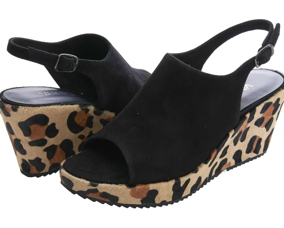 - Stand out in the crowd and walk with style by wearing the Vaneli® Liza sandals. The suede upper of these sandals features a back strap with a buckle closure that offers durable support and a perfect fit. Breathable and comfortable, these wedge sandals are an ideal choice for all-day wear. The leather insole and leather lining offer added comfort and durability. These heeled sandals are perfect to pair with different outfits and styles.