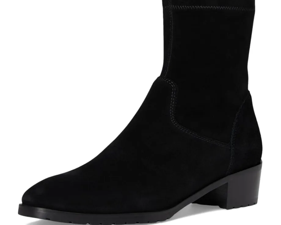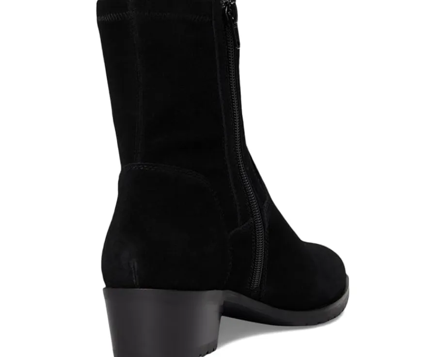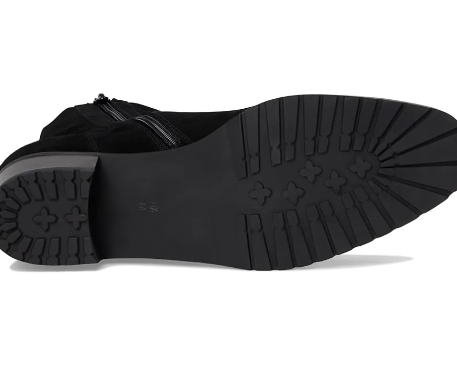 - Crafted with a stretch suede upper, the Vaneli® Oleg ankle boot features a zippered side closure for easy wear and a cushioned leather footbed that supports all-day movement. Its stacked block heel adds a subtle lift, while the treaded rubber outsole ensures reliable traction in varied conditions.