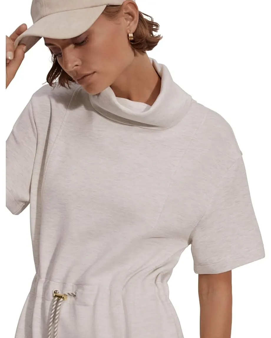 - Designed witn an adjustable drawcord closure at the waist, the Varley® Sophie Dress offers a flattering fit. The cowl neckline and short sleeves of the dress provide added comfort and style. The durable viscose blend of this mini dress delivers superior stretch and durability. Get ready for a comfortable day out by wearing this short dress.