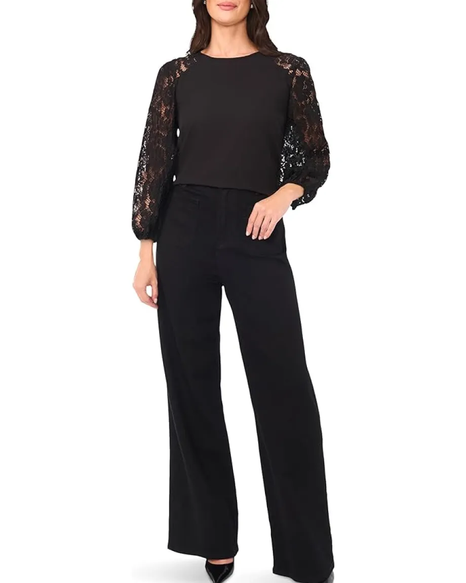 - Add a touch of elegance to your chic style in the Vince Camuto® Crew Neck Lace Sleeves Long Sleeve. This top offers a crew neckline with lace detailed three-quarter sleeves and a back button-and-loop closure.