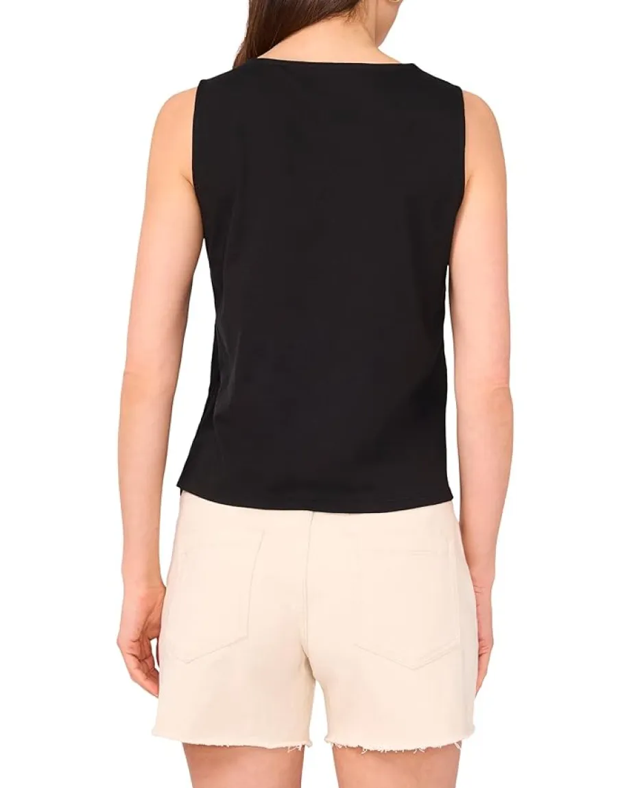 - Add a chic touch to your warm weather style in the Vince Camuto® Crochet Front Tank Scallop Edge. Perfect for layering or worn alone, this top features a round neckline in a sleeveless design and a scalloped hemline.
