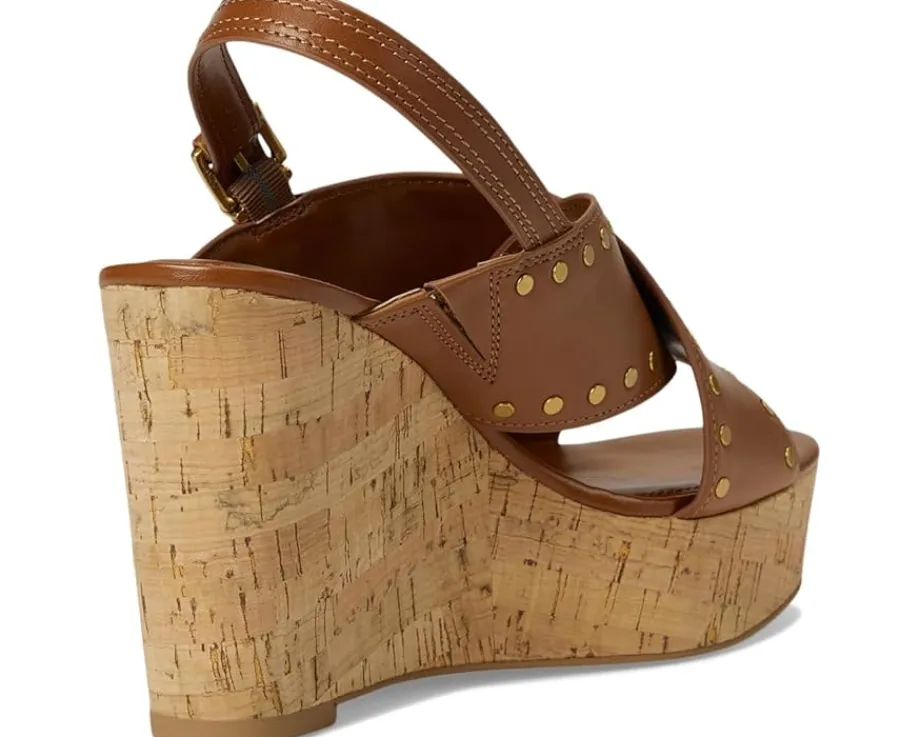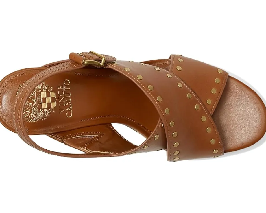 - Stand out in style donning the Vince Camuto® Ellna Cross-band Wedge Sandals. These chic sandals feature leather upper with stud detailing, giving them a trendy edge. The cross bands add a unique touch, while the synthetic lining and padded footbed provide ultimate comfort. With a buckle closure for a secure fit, these sandals are perfect for stepping out in style.
