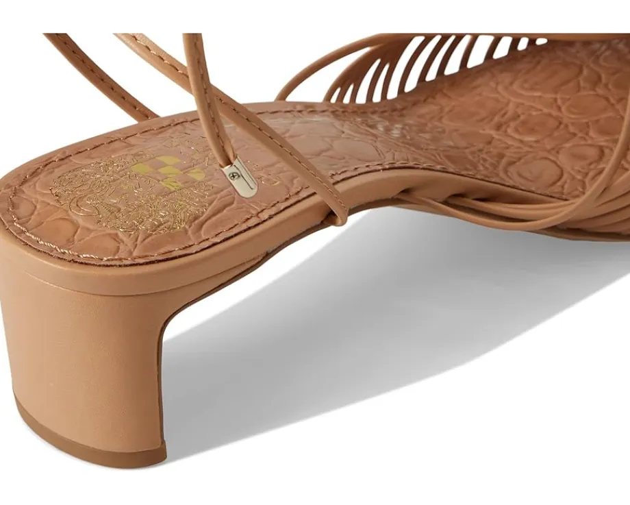 - The Vince Camuto® Lory Ankle Wrap Kitten Heel Sandals feature a strappy design that offers a stylish appeal, making them perfect to pair with your party outfits and dresses. These heeled sandals are made of a man-made upper, insole, lining, and outsole. The strappy tie closure ensures a perfect fit.