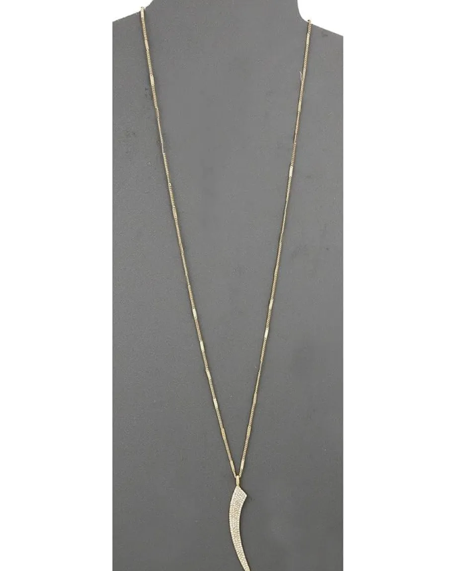 - Necklace feature horn pendant with pave detail.