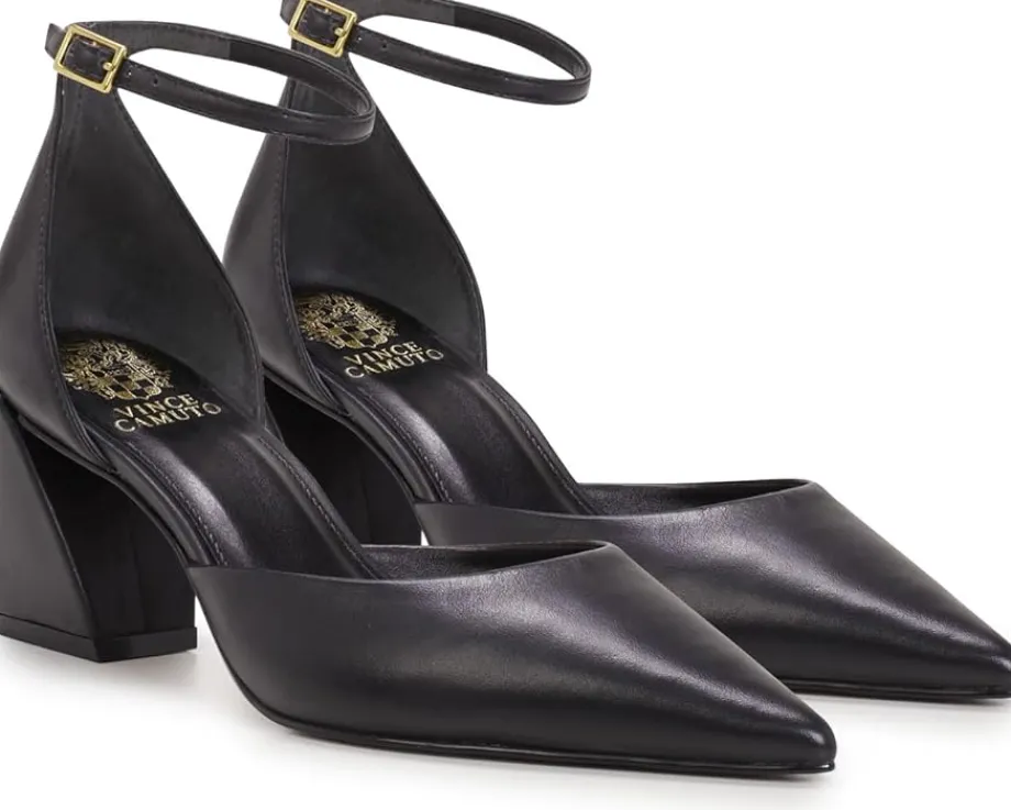 - Sorenn is a two piece, point toe pump with adjustable ankle strap and buckle closure. The silhouette is versatile and works for all four seasons. The sculpted heel is leather covered and measures 2.75 inches. Thanks to the comfort sock and rubber outsole, your feet will be ready to take you wherever you want to go.