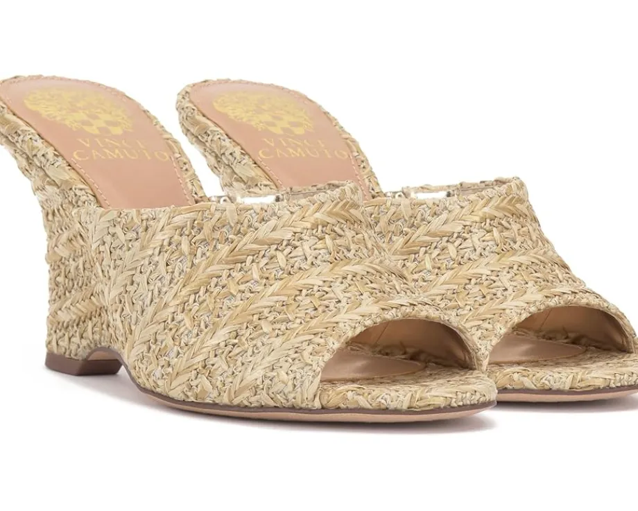 - Effortlessly elevate your summer wardrobe with the Vince Camuto® Vilty sandals, where comfort meets sleek sophistication. Designed with a sculpted wedge heel and a rounded open toe, these sandals offer a perfect blend of elegance and ease. The inside elastic gore not only ensures a secure fit but also enhances overall comfort.