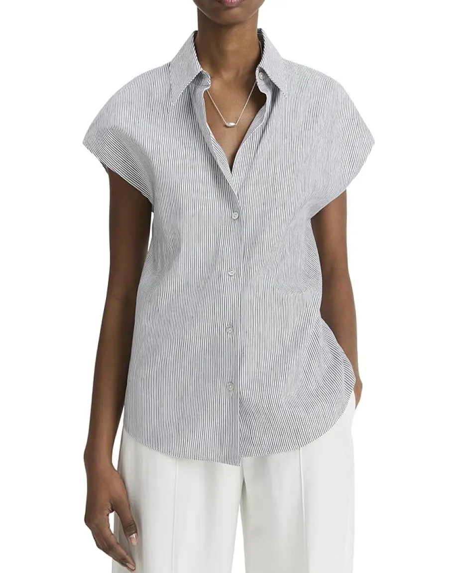 - The Vince® Ticking Stripe Cap Sleeve Blouse is crafted from ticking stripe linen-cotton for a lightweight, breathable feel. A surprise smocked detail at the back is complete with slender self-ties.