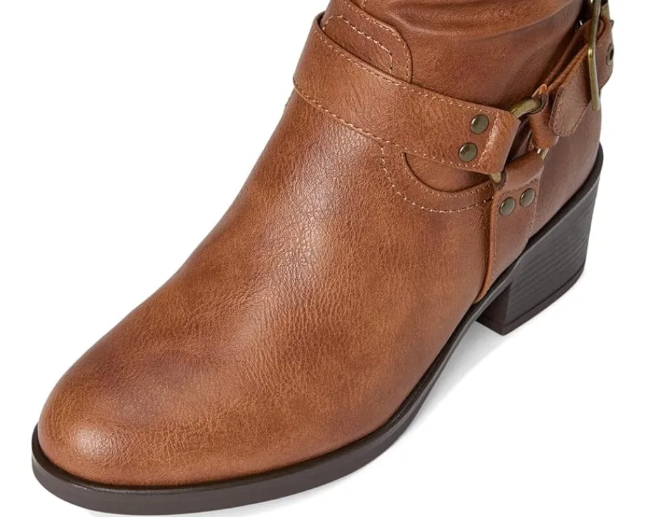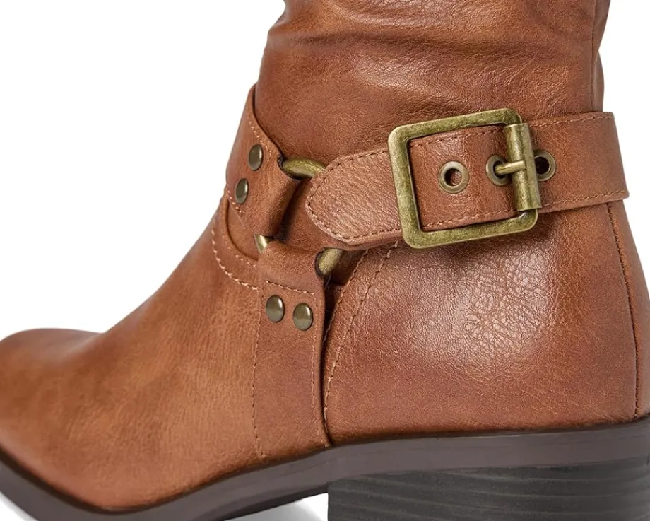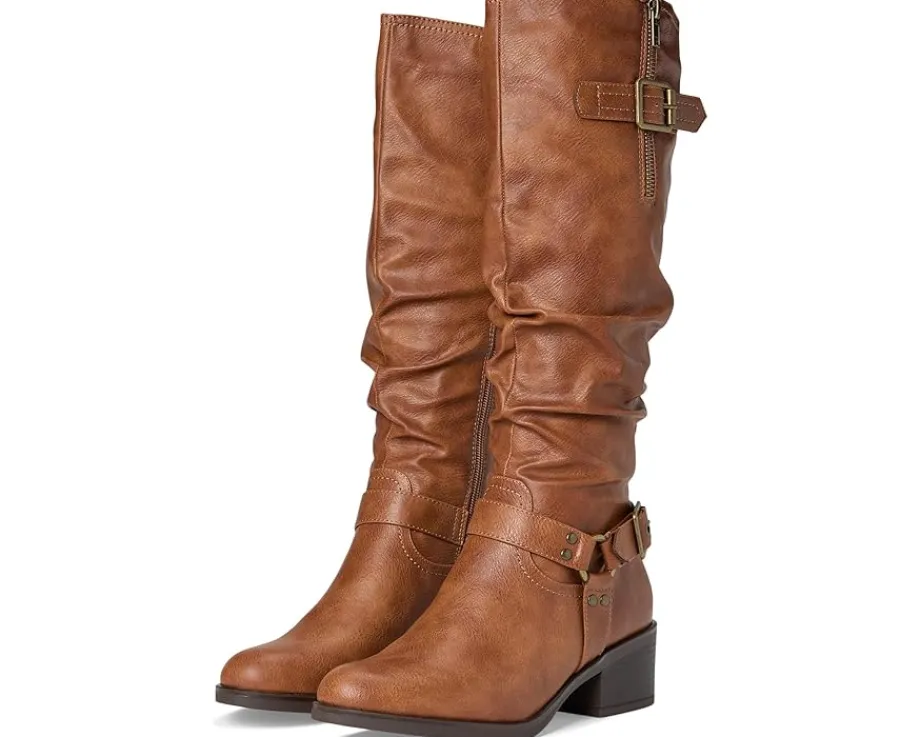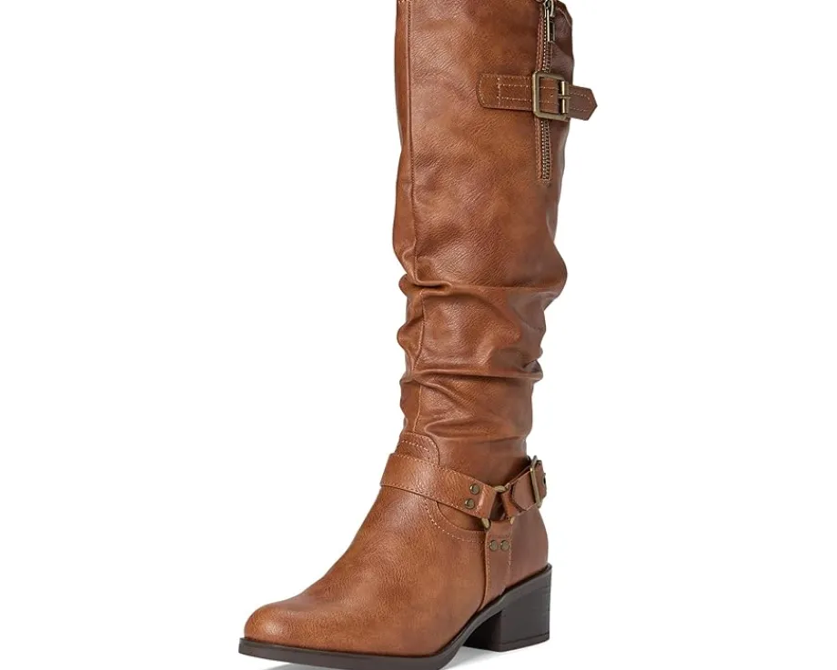 - Saddle up for style and sophistication with the cushion tall shaft boot from White Mountain shoes. The western inspired harness buckle and strap give it a unique look to a classic riding boot. The top buckle isn’t just for looks; it is adjustable to give you a wider shaft if needed.
