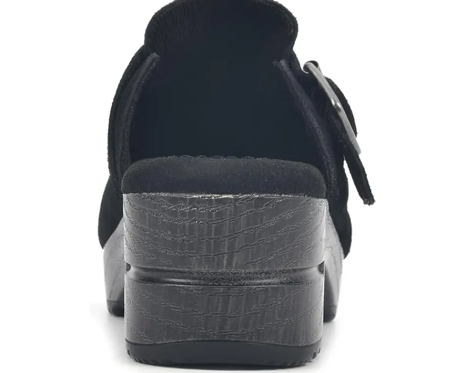 - The cozy and stylish White Mountain® Behold clog is equipped with an open back and belted buckle hardware strap. The contoured, comfort footbed and block heel give you all the support you need. This clog stands apart thanks to its wear-all-day comfort features.