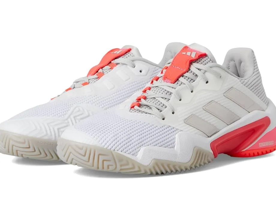 - Experience top performance on the court or get going for an evening jog by wearing the adidas® Barricade 13 shoes. The low-top sneakers have durable cushioning that helps protect against hard landings. The shoes have a three-strip pattern, round-toe design, lace closure, and intricate color-block laces. They have textile and synthetic upper, textile lining, and removable textile footbed for a comfortable wearing experience.