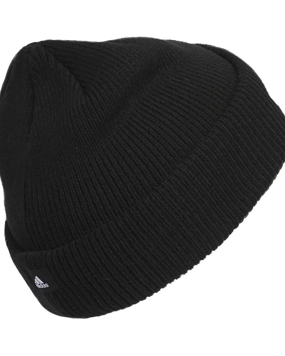 - Complete your look by accessorizing with the classy adidas® Script Fold Beanie. The fold-up cuff is embroidered with the adidas® logo so there’s no mistaking its sporty heritage. The beanie features a ribbed knit constriction with a 3 in. cuff height and raised embroidery brand logo for effortless style.