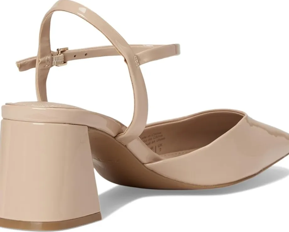 - Ankle strap and buckle closure.