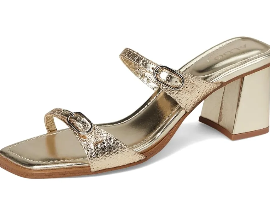 - Keep up with the glam and class when wearing this ALDO® Maymay squared toe sandal. Featuring slim buckle straps and a stacked block heel, this slip-on footwear is designed with ALDO Pillow Walk™ technology for all-day cushioned support.