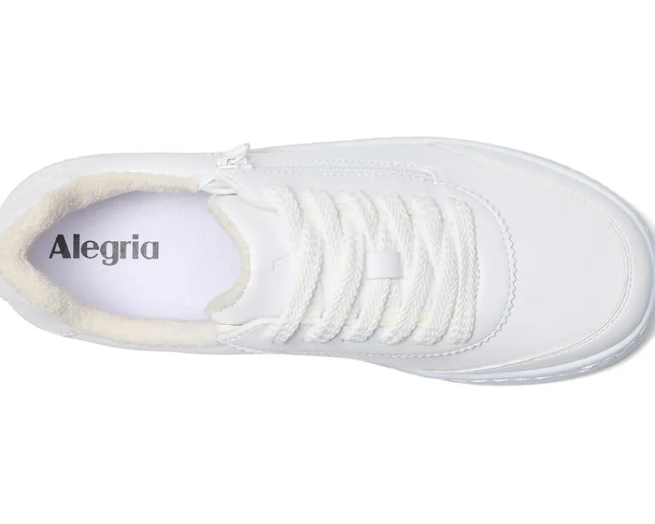 - Where versatility meets bold style, the Alegria® Averie sneakers feature adjustable laces and a zippered side closure to give you the perfect fit. The leather and suede upper will dress up any outfit while the lightweight EVA slip-resistant outsole provides a durable grip. These leather shoes come with a removable canvas-wrapped cork and polyurethane footbed with built-in arch support and polyester lining. Super comfortable and stylish, these lace-up sneakers work with different outfits and styles.