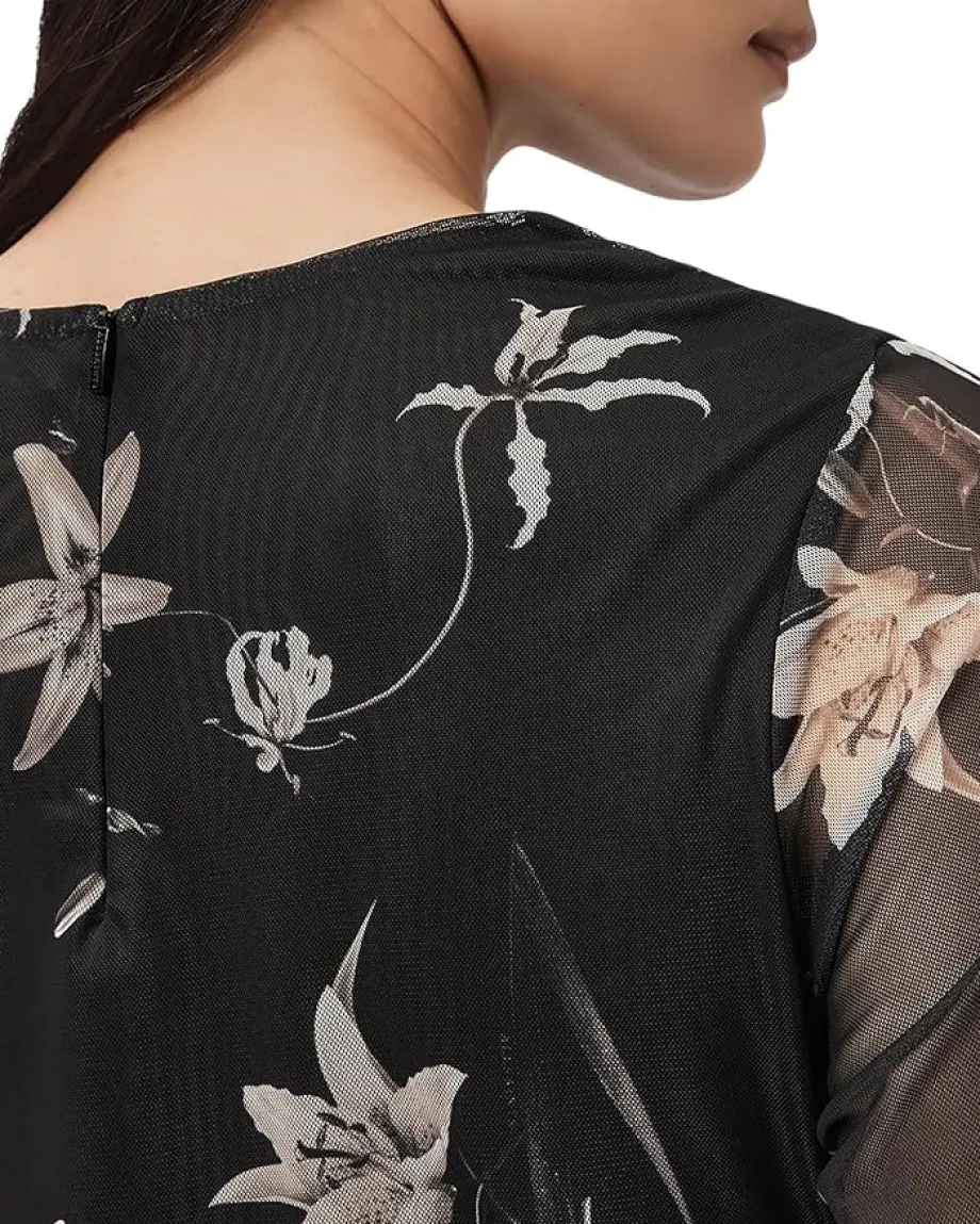 - Exude the most graceful vibes wherever you go donning the AllSaints™ Caia Mesh Top. The pull-on style top features a crew neck, long sheer sleeves, a pretty allover floral print, and a straight hem.