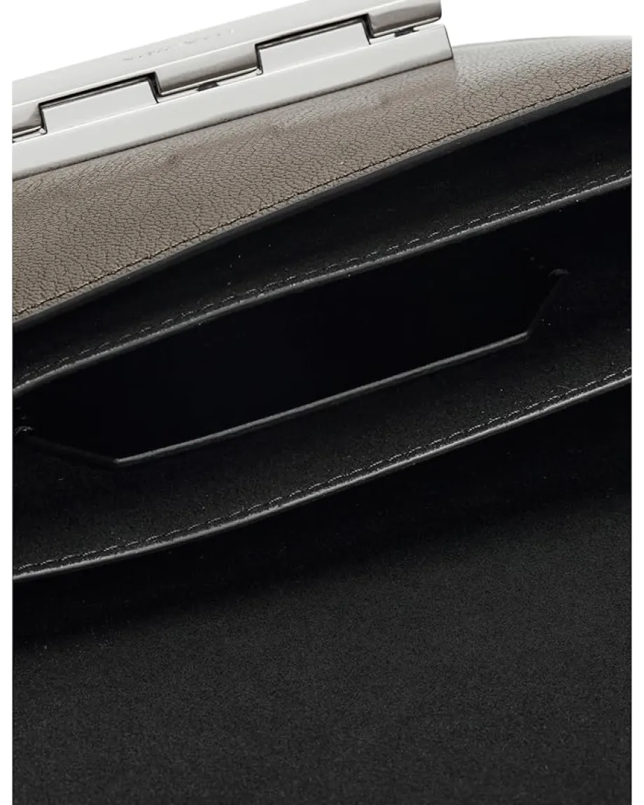 - Chic meets sleek, AllSaints™ Etta Clutch. Crafted from premium leather with a luxe leather lining, this statement piece features a new branded hinge push-lock closure that adds a modern twist to a timeless silhouette. It’s a roomy single compartment with an interior pocket that keeps your essentials secure and organized, phone, cards, keys, and more. Whether carried by hand for an ultra-minimalist vibe or worn with the removable chain strap for hands-free glam, it’s the kind of clutch that turns heads wherever you go.