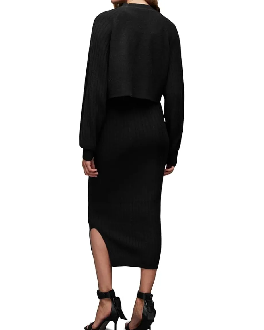 - Flaunt your stylish look wearing the AllSaints™ Margot Crew Dress. This 2-in-1 ribbed jumper dress features crew neckline, and long sleeves with added volume. It sits on a bodycon dress with side splits – a casual dress that flatters for dressing.